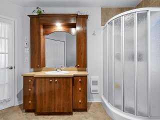 Le confort est au rendez-vous grâce à une thermopompe murale neuve, un échangeur d'air et un interphone. Vous apprécierez la salle de bain dotée d'une douche indépendante, ainsi que les planchers alliant bois franc et céramique, ajoutant cachet et durabilité à l'ensemble.